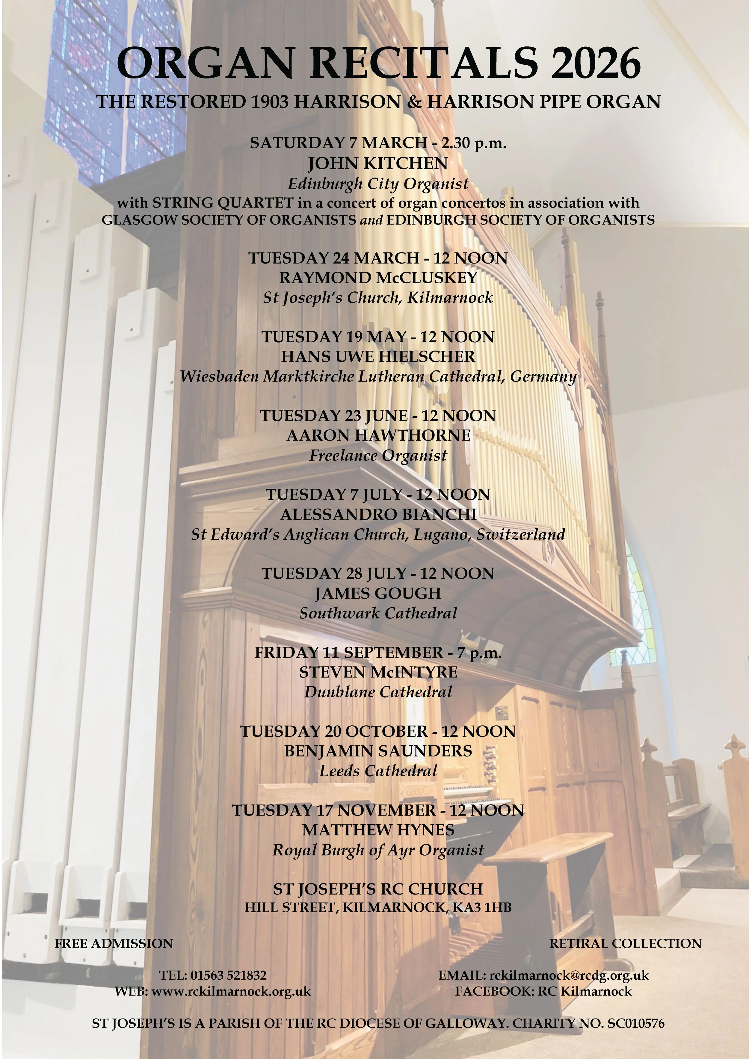 Organ Recitals, St Joseph’s RC Church, Kilmarnock